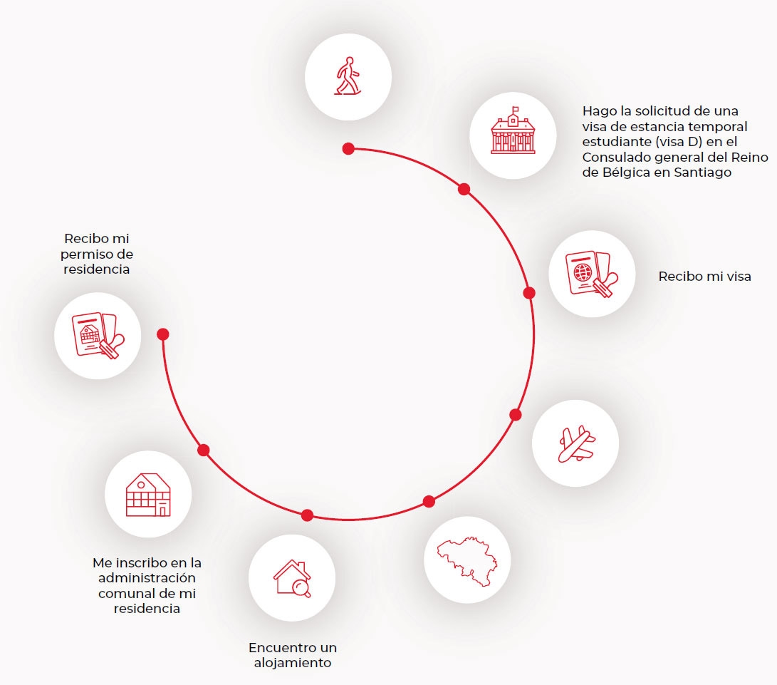 | Recuerde que la única institución competente para las visas de larga estadía es el Consulado de Bélgicaen Santiago. Los medios de contactos oficiales son: santiago@diplobel.fed.be y el número de telefono: 22 694 0400 |